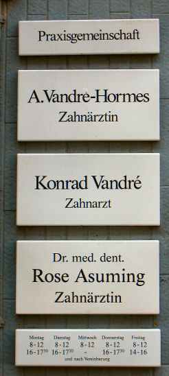 Als ich im Sommer 1980 aus Bremen nach Göttingen zurückkehrte, brauchte der Sohn der Zahnarzthelferin einen neuen Zahnarzt. Kollegen machten einen Vorschlag, und ich war sofort überzeugt, wenn auch (zunächst) aus nicht-fachlichen Gründen: "Geh mal zu Konrad, da gibt es im Wartezimmer Musik von Dire Straits". Nach 25 Jahren als Patient habe ich den Eindruck, einen guten Rat bekommen zu haben. Aber: mal abwarten, wie meine Einschätzung beim 50-jährigen Patienten-Jubi sein wird .... |