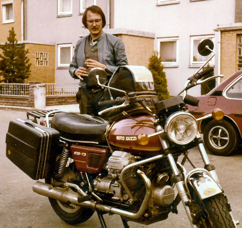 Seit 1977 stolzer Fahrer einer "Moto Guzzi 850 T 3". Wie heißt es bei Udo Lindenberg: "Das einzig starke an Dir ist Deine Moto Guzzi, doch sonst bist Du so ein Fuzzi ..." Im Urlaub 1982 (u.a. auf dem Ring) endete die Guzzi in einem Unfall am Stauende auf der Autobahn bei Baden-Baden. Der Fahrer fiel nicht auf, sondern neben die Leitplanke und kam so davon. |