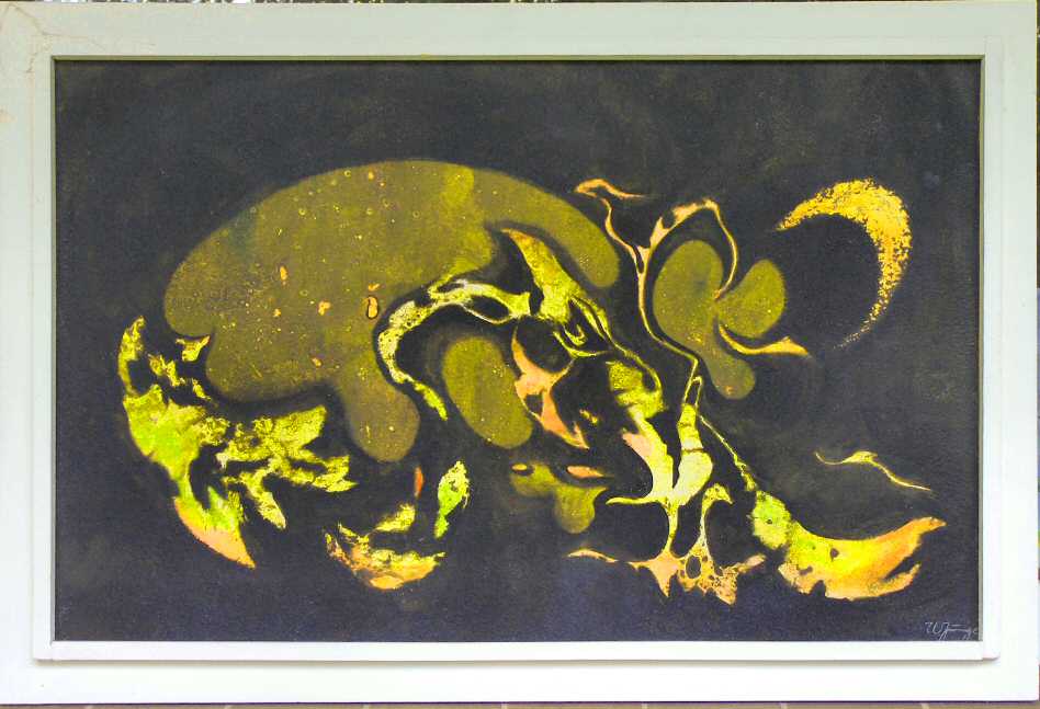 Dieses Bild wurde 1964 von Walter Junge gemalt, der zu meiner Schulzeit Kunsterzieher am Gymnasium Salzgitter-Lebenstedt war. Junge hatte auch das Gemälde an der Außenwand der Aula konzipiert, den stilisierten Kranich, der später zum Namensgeber des heutigen "Kranich-Gymnasium"s wurde. Walter Junge hatte auch Kontakt zu Erich Wittemann, der viele Jahre als freier Journalist auf Zeilenhonorarbasis für die lokalen Tageszeitungen schriebt ("Salzgitter-Zeitung", "Salzgitter-Kurier" und "Salzgitter-Presse"), u.a. über Ausstellungen und die Künstlervereinigung "Salzgitter-Gruppe". In den 60er Jahren schenke Junge meinen Eltern das Bild, das dann bis zur Auflösung des Haushaltes in Lebenstedt den Ehrenplatz über dem Sofa innehatte. |