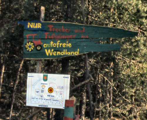 Der Wegweiser zum Hüttendorf in Gorleben |