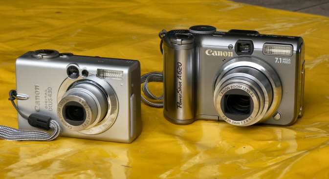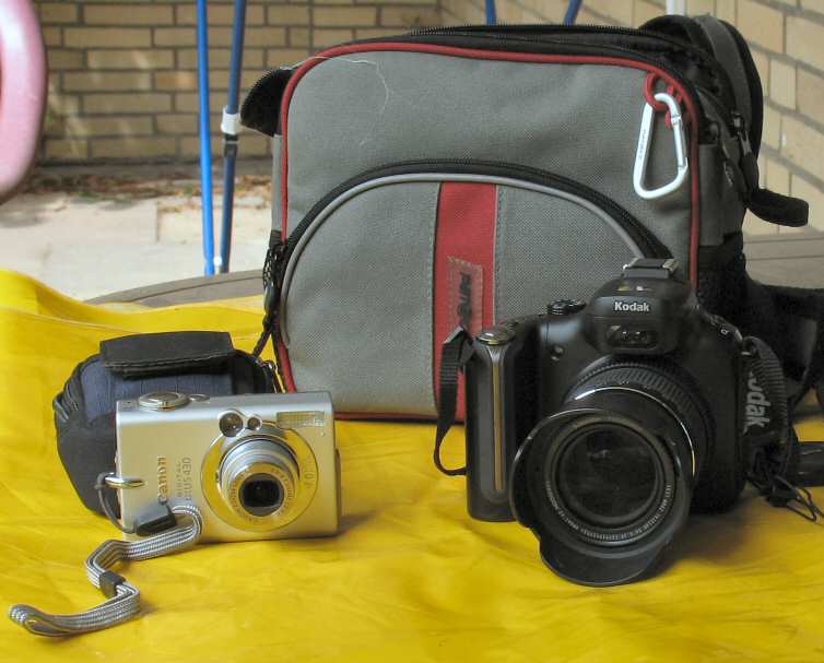In der Motorradzeit war die Canon A 1 mit Zoom immer dabei, auf dem Fahrrad ging das dann nicht: eine Olympus XA-2 (eingstellbare Sucherkamera) als Übergang. Dann Einstieg in die Digitalphotographie mit 2 MB-Canon Ixus V2 im Jahre 2003. Aufstieg auf 4,3 MB-Canon Ixus 430.