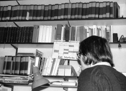 Kleine Arbeitssimulation für den Photographen, vermutlich meinen Vater. Ein Höhepunkt des Elternbesuches war der Besuch beim Griechen "Kostas" direkt gegenüber. Wenn der Blick aus dem Fenster über den Kreuzbergring schweifte, verhakte er sich leicht am Gyros-Spieß im Fenster gegenüber.
